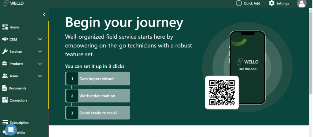 Wello é uma plataforma moderna, FSM-first, desenvolvida especificamente para empresas de serviços que desejam funcionalidades poderosas sem a complexidade dos sistemas enterprise tradicionais. Diferente das ferramentas centradas em CRM, a Wello foca no que realmente acontece em campo: agendamento, produtividade dos técnicos, execução do trabalho e faturamento.